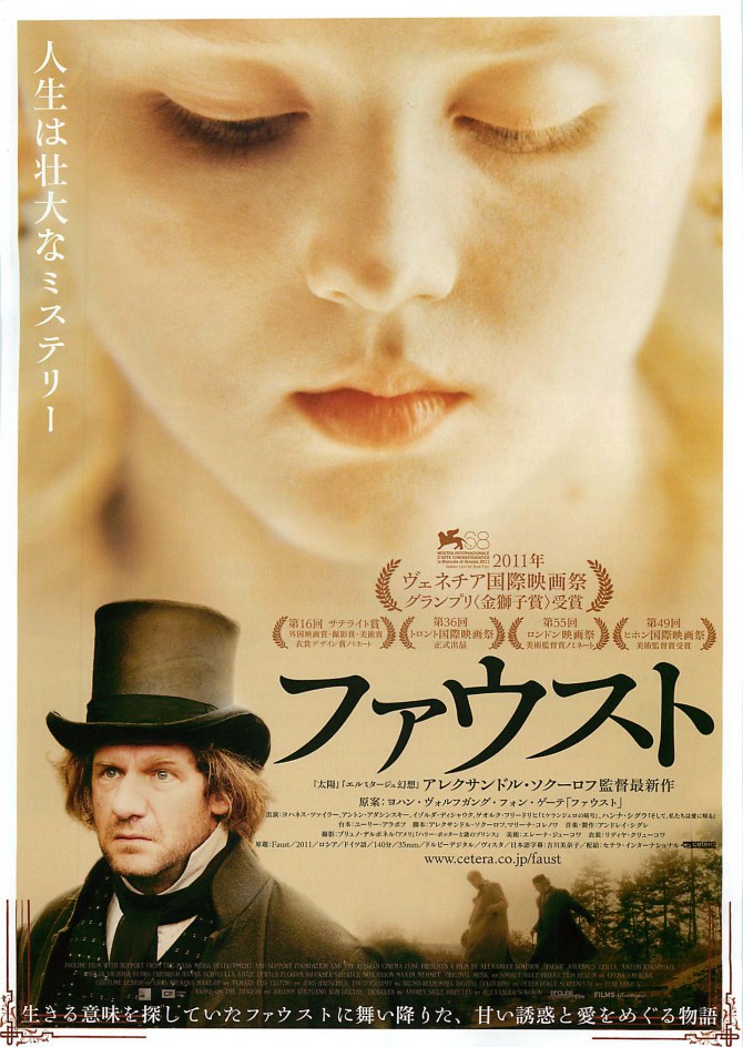 先日、ソクーロフの「ファウスト」を鑑賞。一言でいうと、見るべき映画ですね。以下、ネタバレを含みます。上映されてすぐわかるのだけれど、画面のアスペクト比が変わっている。ほとんど正方形になっている。タイトルは「ファウスト」というけれども、ソクーロフ独自の解釈が入っていて、ゲーテのそれとは全く違うものに仕上がっていて、むしろ「ソクーロフ版ファウスト」というべきだろう。