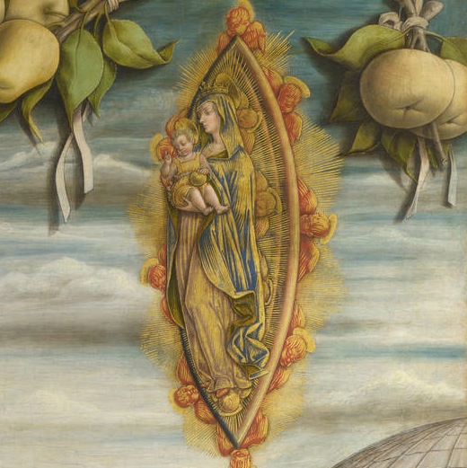 カルロ・クリヴェッリ「聖ガブリエルの霊視」(部分)(1489頃、ロンドン・ナショナルギャラリー)