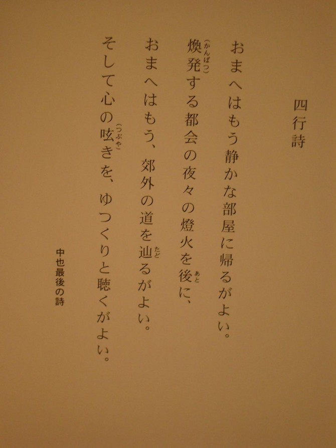 この写真は、山口市の中原中也記念館にて。 なぜかふっと思い出した。
