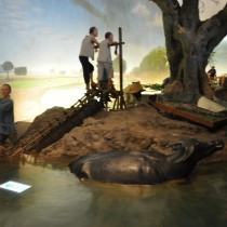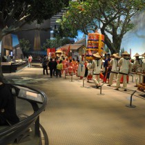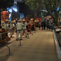 台湾歴史博物館の常設展示。特徴的なのは、ジオラマが多いことであろうか。説明というよりも体験的な内容。そのジオラマにおいて観覧者とのあいだに仕切りや高さのコントロールを最小限におさえていて、空間として一体性が強いように思われる。鹿港のジオラマや植民地時代の日本人のイメージ、原住民に銃をかまえる日本軍。台湾人の出征など。