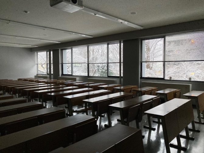 特別快速の電車に乗る。停まる駅よりも停車しない駅の方が多く、ただ風景が流れていく。電車のなかで話をしているふたりの女性がいた。双方ともマスクをして、相手を見ながら頷いている。頷きによって発話が担保されているようにみえる。なぜだろう。『ユリイカ』に書いたぬいぐるみ論でも頷くことによって発話することを書いたな。明るい紫色の手袋をしている女の子が座席に脛をのせて外を見やっているのにつられてわたしも外を見ていた。少し舞っていた米粒ほどの小さな雪があるだけだった。夕方になるとそれは白いスクリーンをあちらこちらに被せていた。