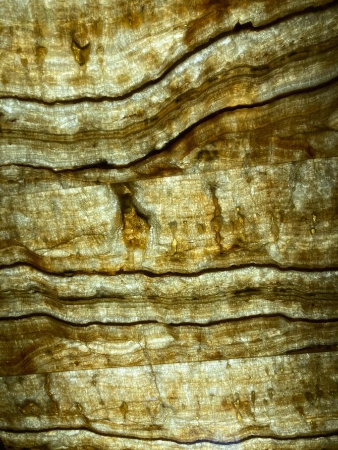 1月25日。写真は松濤美術館エントランスにある、オニキスの石材を薄くカットした天井。外は軽い雨が注いでいるなか、デスクワークとしてメールのやり取りや書類の整理に終始する。集中力をピークに持っていくことはせず、淡々と作業をこなす。あらかじめ何をすると紙に書き出しておかないとエンドレスに感じてしまいがちだ。紙はA4横1枚のまっさらなもので、そこにすることを書き出しておいて、それを終えると鉛筆で横線を入れて消す。全部横線が入るまで作業をするといったことだ。