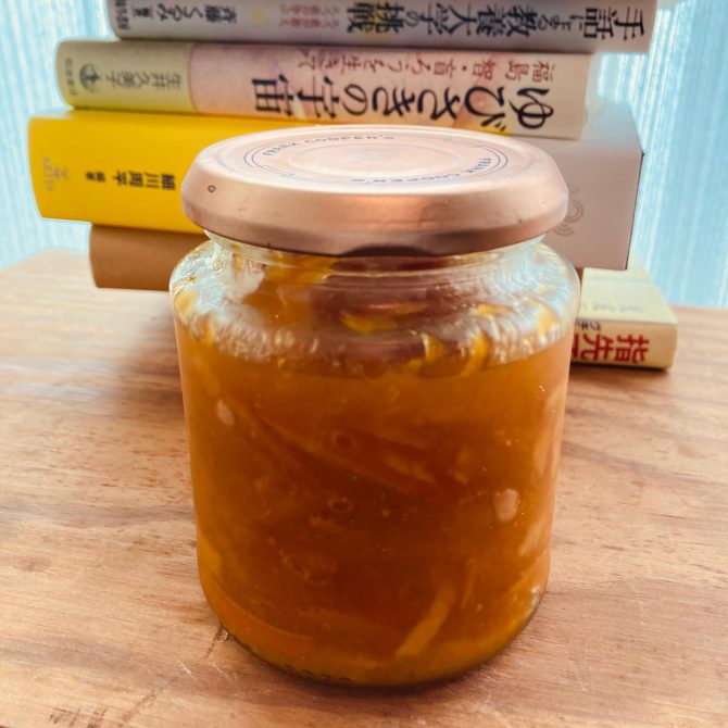まず皮を丁寧に洗い、ヘタを取ったものを半分に切って、皮をむく。皮の裏にはワタが付いているのでそれを削ぐ。実から薄皮をはいでいく。皮は沸騰させた湯で柔らかくしておいて、千切りにする。薄皮をネットに包んで実とゆっくり煮込んでいくと水分が弾けてねっとりした感じになってくる。ひとつのオレンジを皮、ワタ、薄皮、実という4つのレイヤーに分けていく過程があること、グラニュー糖を加えてさらに水を飛ばしていくことを考えると、ジャムはjamという名前のごとく、減算と加算を絶え間なく繰り返すことで、何かを極端に押し込めてしまっている。ウキウキして旅行の準備をするときに圧縮袋に衣類を小さくするために空気を抜いたり、朝の都市の満員電車はほんらいの定員を超えて人たちを無理やり車内に押し込めている。パソコン上では容量の大きいものを圧縮アプリで小さくしたり、リサイズしている。わたしたちはジャムのような日常を生きている。