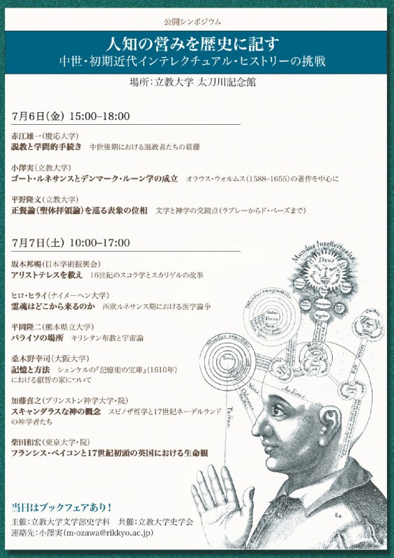 7月6日から7日にかけて立教大学でメガシンポ「人知のいとなみを歴史にしるす 中世・初期近代インテレクチュアル・ヒストリーの挑戦」が開催されます。プログラムはここにあります。 Continue Reading →