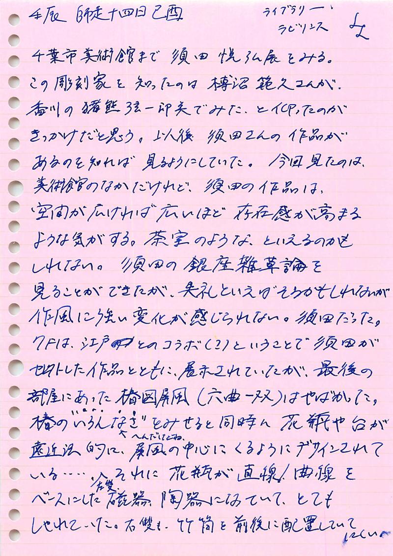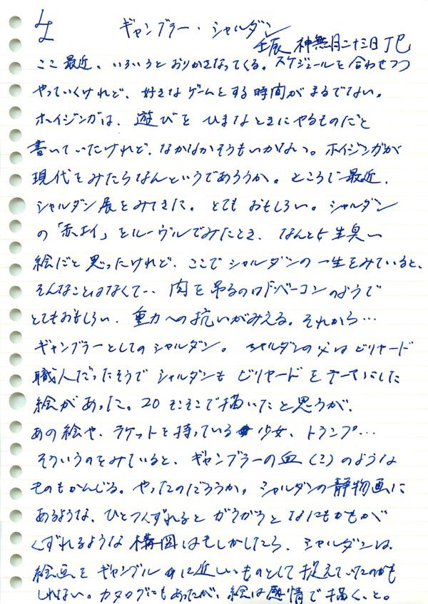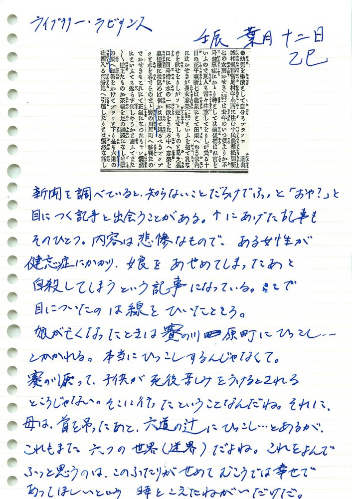 村上の祈りのあいだを歩きながら、わたしは点字のことを思い出していた。点字は、裏側から書く言語である。点字板に紙を挟み、針に似た形状の点筆を使って裏側から紙を向こう側に突き出しているからだ。紙を圧延するものである。紙の表面を凸のパターンにすることで、文字を触覚で読めるようにしている。その意味で点字は厚めの紙を必要としている。 Continue Reading →