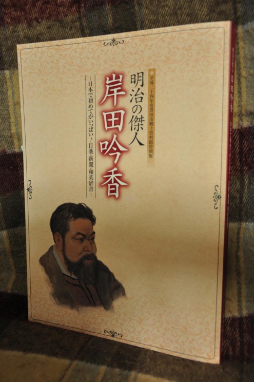 豊田市郷土資料館が特別展「明治の傑人 岸田吟香 ~日本で初めてがいっぱい!目薬・新聞・和英辞書~」を開催しています。さっそくカタログを入手しました。これは1000円で購入することができます。内容は11章で成立しており、岸田吟香の一生と業績を集結したかのような内容になっています。いうまでもなく、岸田は近代辞書学、新聞史(ジャーナリストの歴史)、日本近代美術史(岸田劉生、高橋由一関連)、医学史(精錡水関連)、訓盲院関係において重要です。
