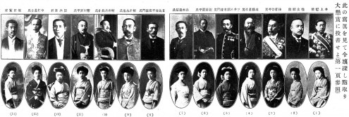 明治期日本における著名人物の写真が上にあり、下に女性の写真があります。この女性たちはどの方の令嬢かをあてよ、というものです。例えば、高橋是清の令嬢はどれか、ということを問うている。