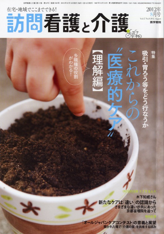 医学書院の雑誌、『訪問看護と介護』2012年8月号に、わたしのインタビューが掲載されました。寒い冬で、時期的にたいへん辛いときだったことをよく覚えています。よくこなせたものだなあ。1頁目は以下のようになっています。 Continue Reading →