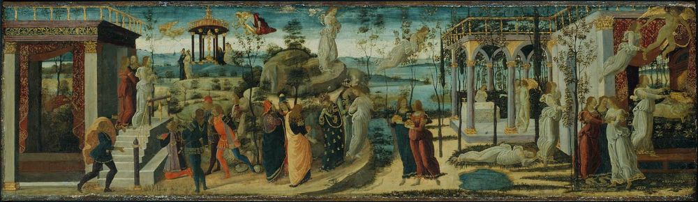 ヤコポ・デル・セライオ《プシュケーの物語》(1490年頃、ボストン美術館)について記録しておきたい。セライオの生没年は1441–1493というが、確定していないそう。もしそうであれば、15世紀に活躍したフィレンツェの画家とまずは覚えておこう。むろんこういう人いっぱいいるけども。セライオのこの絵はもともと家具の一部だったらしい。横に細長い家具だったと想像される。